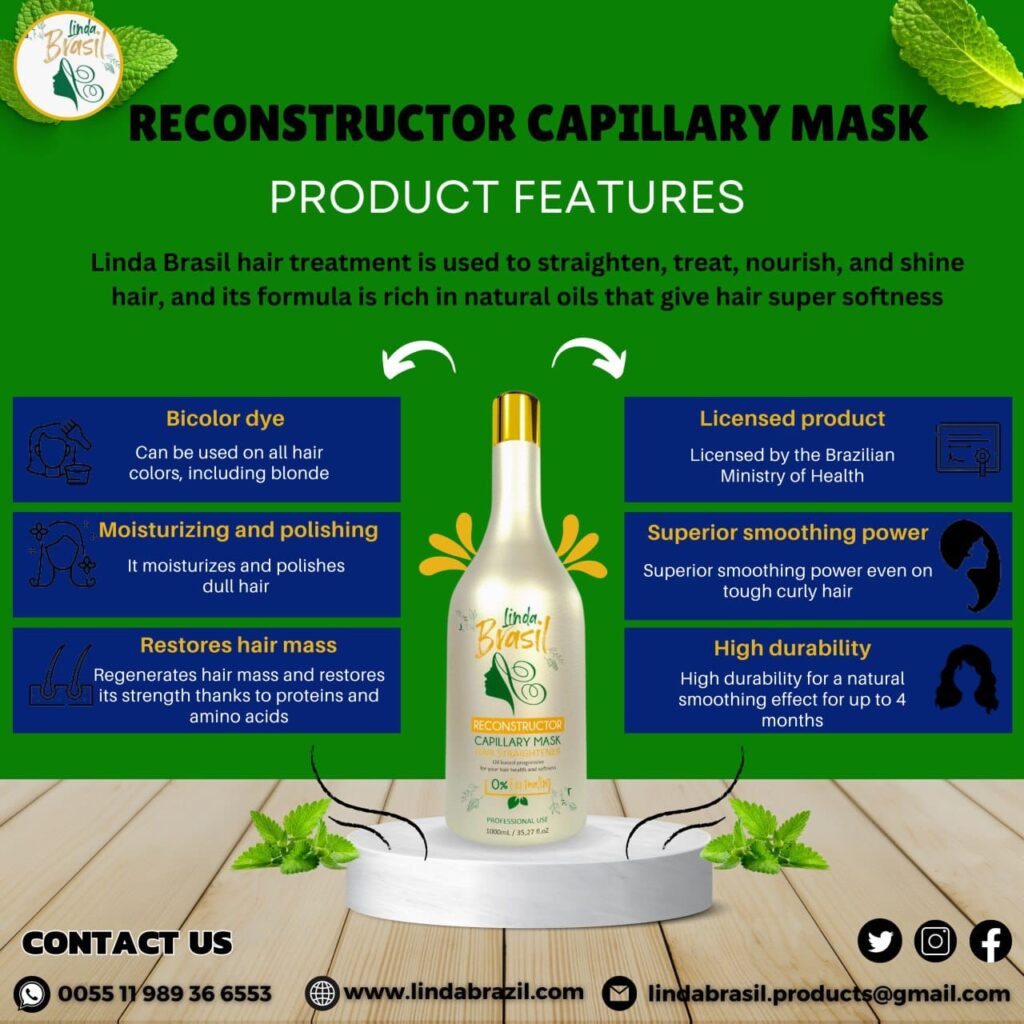 Revitalize and transform your hair with Linda Brasil Reconstructor Capillary Mask. Enriched with natural oils, proteins, and amino acids, it deeply nourishes, strengthens, and smooths even the toughest curls. This professional-grade treatment restores hair mass, adds lasting shine, and leaves your hair soft, healthy, and manageable for up to 4 months. Suitable for all hair colors, including blonde, and fully licensed by the Brazilian Ministry of Health, it delivers superior results with every use.